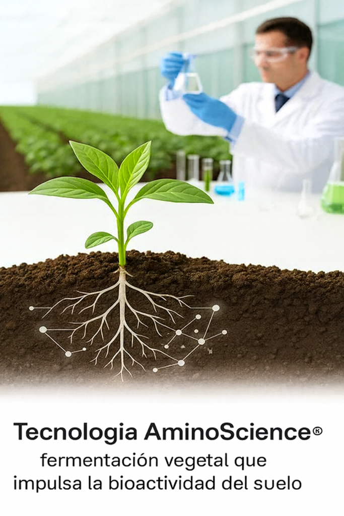 Through its AminoScience® technology, plant-based fermentative extracts incorporate more than 500 active metabolites, amino acids, carboxylic acids, vitamins, and phenolic compounds that exert a natural prebiotic effect. These compounds stimulate metabolic pathways related to nutrition, cell signaling, and stress tolerance, promoting a more active, balanced, and resilient soil ecosystem.