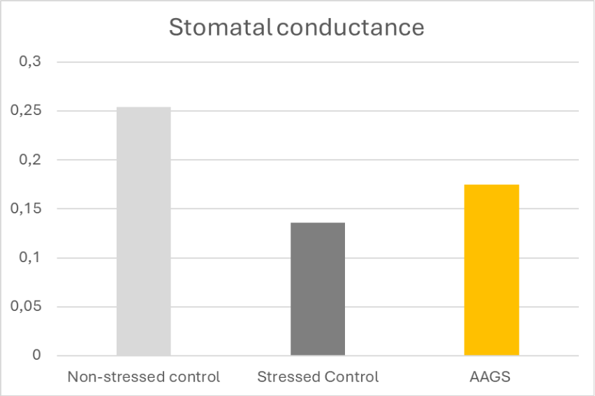 Measurement of stomatal conductance is a key indicator for analyzing plant responses to stress conditions. Under moderate water deficit, physiological data show that treated plants maintain a more efficient balance between photosynthesis and transpiration.